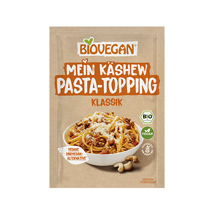 Das Biovegan Käshew Pasta-Topping ist die pflanzlich leckere Alternative zu geriebenem Parmesan und damit perfekt für die vegane Küche – so als Krönung für all Deine köstlichen Pasta-Gerichte. Aber auch Salat, Reis und vieles mehr kannst Du damit ganz einfach würzen und verfeinern.
