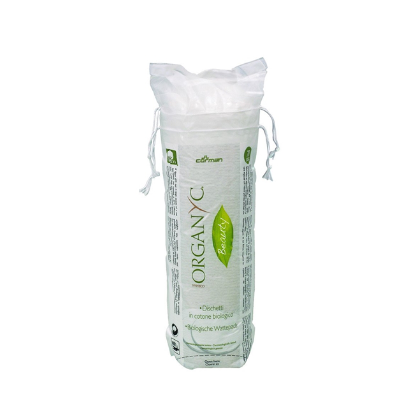 Organyc Makeup-Pads aus zertifizierter biologischer Baumwolle. Die speziell geprägte Seite ermöglicht eine sanfte und tiefgründige Reinigung. Die Verpackung besteht aus erneuerbarem Rohmaterial.