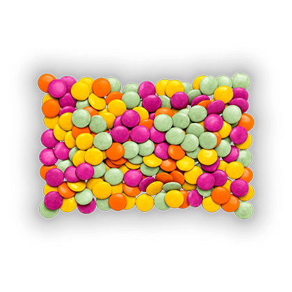 Drops aus dunkler Schokolade überzogen mit buntem Zuckerguss.