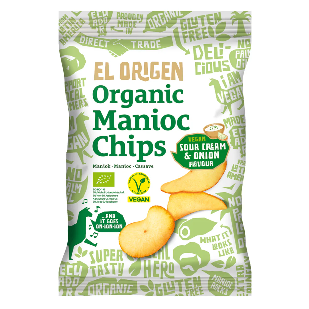 El origen, der crunchy Snack aus Lateinamerika: Bio-Maniok Chips, die den Ausbau von direct trade und biologisch nachhaltiger Landwirtschaft in Ecuador unterstützen. Vegan, Bio-zertifiziert, Palmöl-frei, Glutenfrei, ohne Zusätze. Für diese super leckeren Chips wird der Bio-Maniok frisch geerntet, in feine Scheiben geschnitten und zusammen mit Sonnenblumenöl und Meersalz zu diesem grandiosen veganen Snack verarbeitet. In Lateinamerika sind diese Chips als traditionelle Spezialität weit verbreitet und schon lange sehr beliebt.