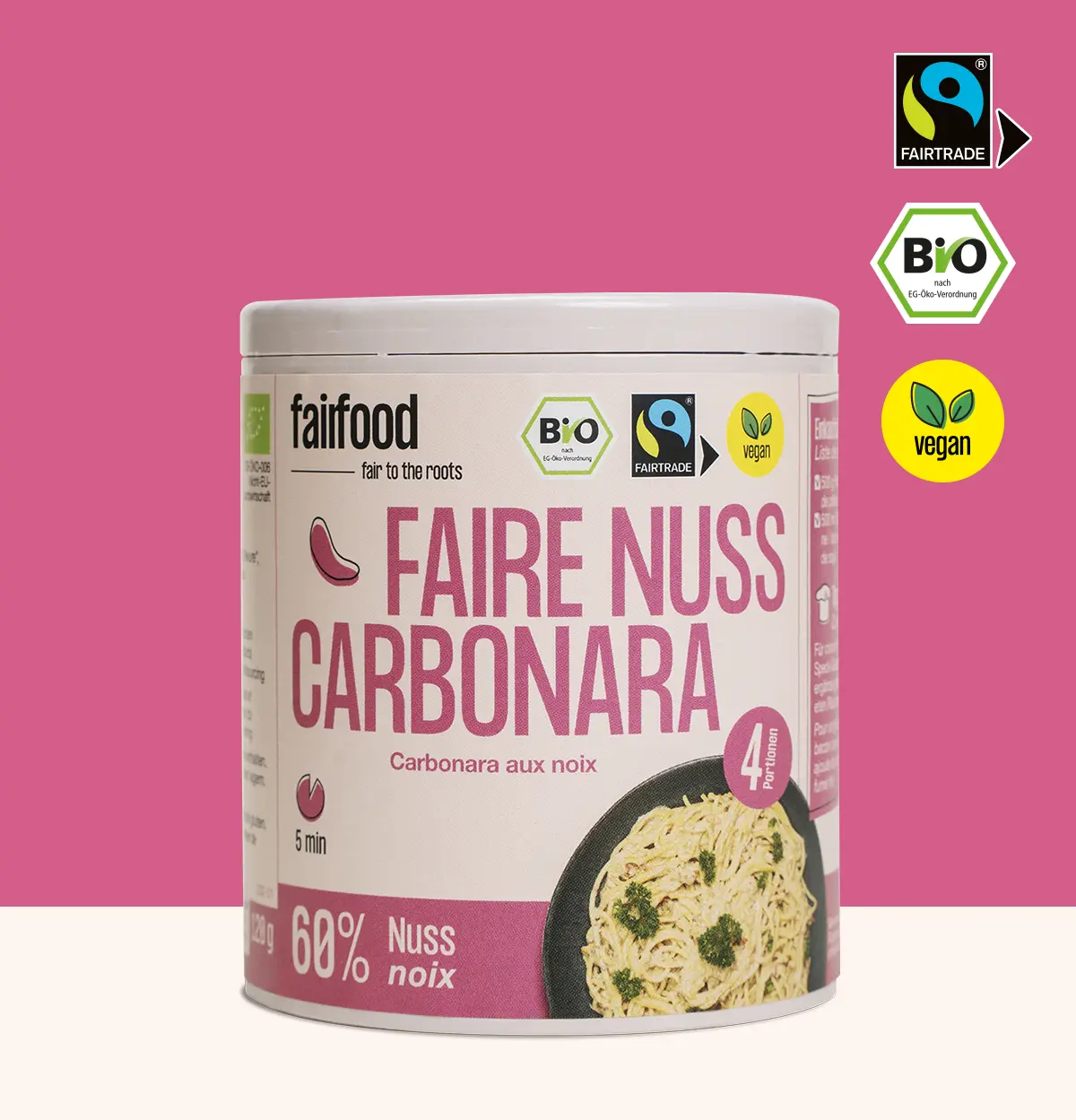 Mit Fairfood geht das nun ganz einfach. Denn das junge Unternehmen, das auf Fairness und Nachhaltigkeit durch alle Produktionsstufen setzt, hat aus besten Bio Cashews und Paranüssen eine Nusscarbonara für uns zubereitet.