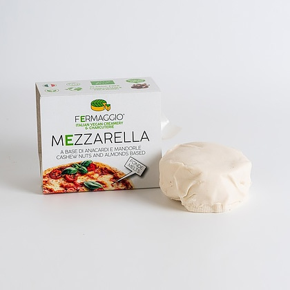 Der Fermaggio Mezzarella stammt – wie könnte es auch anders sein – aus Italien. Er wird aus besten biologisch angebauten Zutaten hergestellt. Wichtigste Zutat ist dabei das Rejuvela – ein Getreidewasser aus Quinoa angesetzt. Es enthält Milchsäurebakterien, makrobiotische Enzyme, B-Vitamine und Mineralstoffe. Und es ist verantwortlich für die wunderbare Konsistenz und den herrlichen Geschmack des Mezzarella.