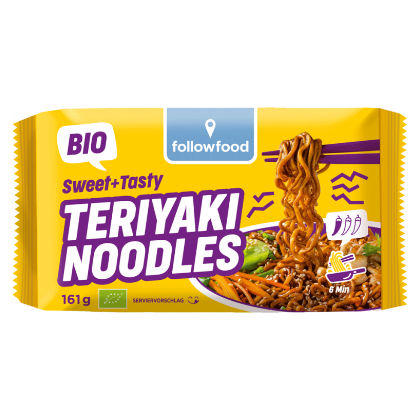 Endlich ein Gericht, das schnell, lecker und nachhaltig in einem vereint – die leckeren Bio Instant Teriyaki Noodles von Followfood!