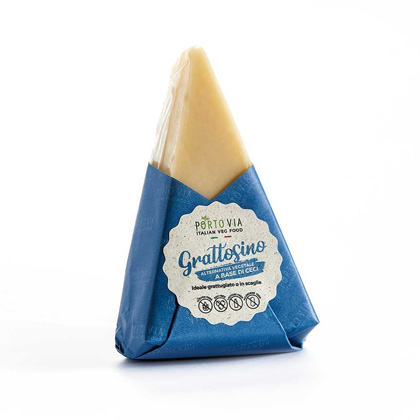 Vegane Alternative zu herkömmlichem Parmesan. Auf Basis von Kichererbsen. In Italien hergestellt.