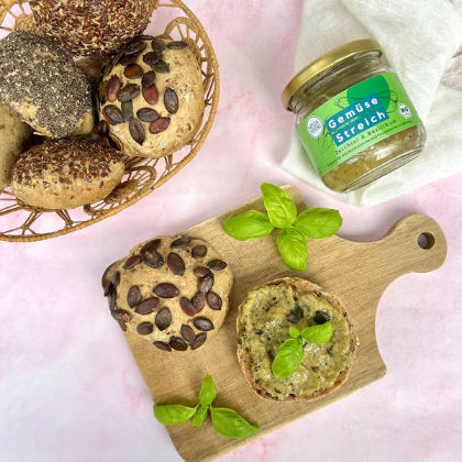 Ganz viel drin ist dafür leckerer Geschmack und feinste Zutaten! Der frische Brotaufstrich kommt in bester Bioqualität mit leckerer Zucchini und herrlich duftendem Basilikum daher.
