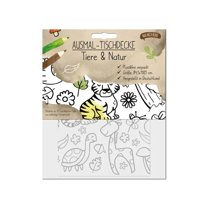 Ausmal-Tischdecke mit herzigen Tiermotiven