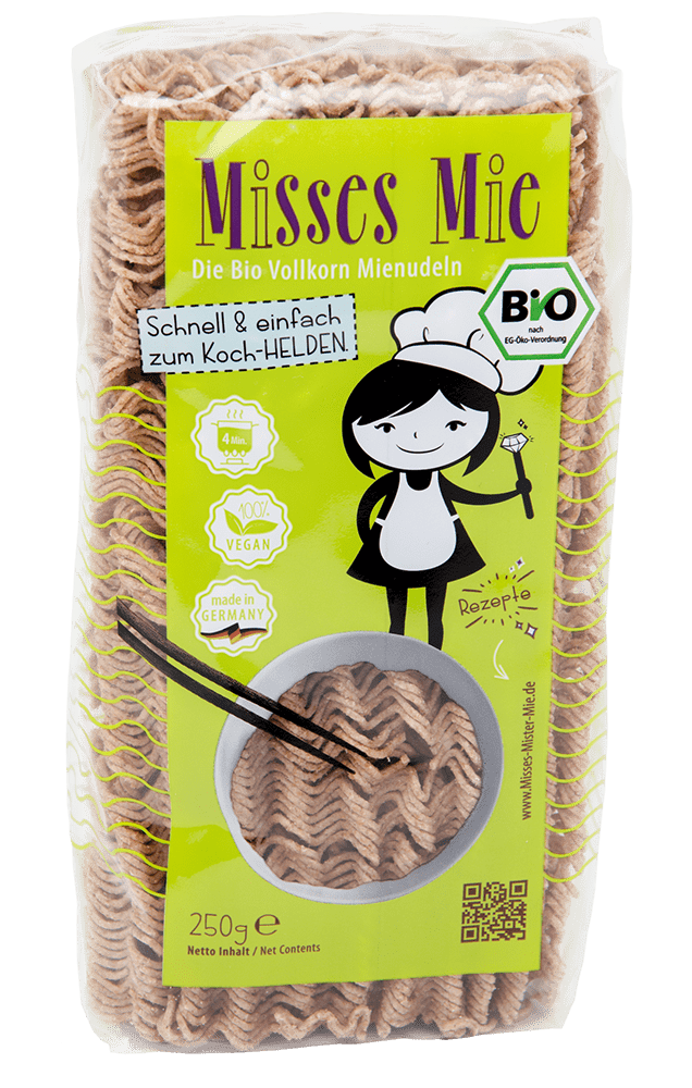 Die Misses Mie & Mister Mie sind sogenannte „Quick-Cooking-Noodles“. Produziert werden sie nach traditioneller asiatischer Rezeptur aber nicht in Asien, sondern in Deutschland, genauer in Duisburg. Für die Herstellung werden konsequent natürliche Zutaten verwendet. Regionale Weizen- bzw. Vollkornmehle, frisches Wasser und ausgesuchte Salze runden dabei noch die Produktion ab.