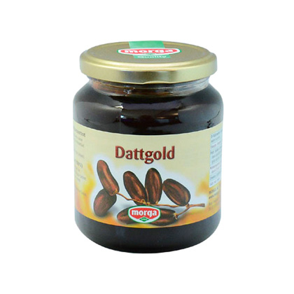 Ein Glas randvoll mit der natürlichen Süsse von sonnengeküssten Datteln! Das Dattgold von Morga ist ideal zum zum Süssen von Speisen oder Backwaren und eine tolle Alternative zu herkömmlichem Zucker. Das Dattgold schmeckt auch sehr lecker als Brotaufstrich oder als natürliches Süssungsmittel in einer feinen Tasse Tee.