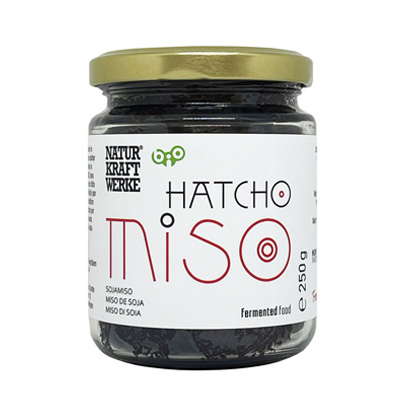 Das Naturkraftwerke Hatchomiso ist ein glutenfreies Sojamiso, welches in Zedernholzfässern langsam und natürlich fermentiert wird. Nach uralter Rezeptur von einem traditionellen Miso-Hersteller in der Präfektur Aichi hergestellt. Für Suppen, Saucen, Marinaden, zum Würzen, pur oder gemischt als Aufstrich.