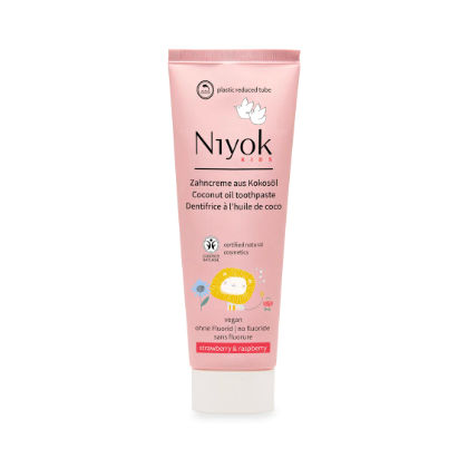 Niyok Zahncreme aus Kokosöl mit Erdbeer- und Himbeergeschmack