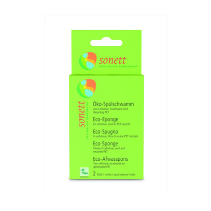 Ein Spülschwamm, der auf der Schwammseite zu 100 % aus Cellulose besteht und dessen Scheuerseite aus 60 % Sisal und 40 % Recycling-PET zusammengesetzt ist. Waschbar bis 60°C. Vegan.