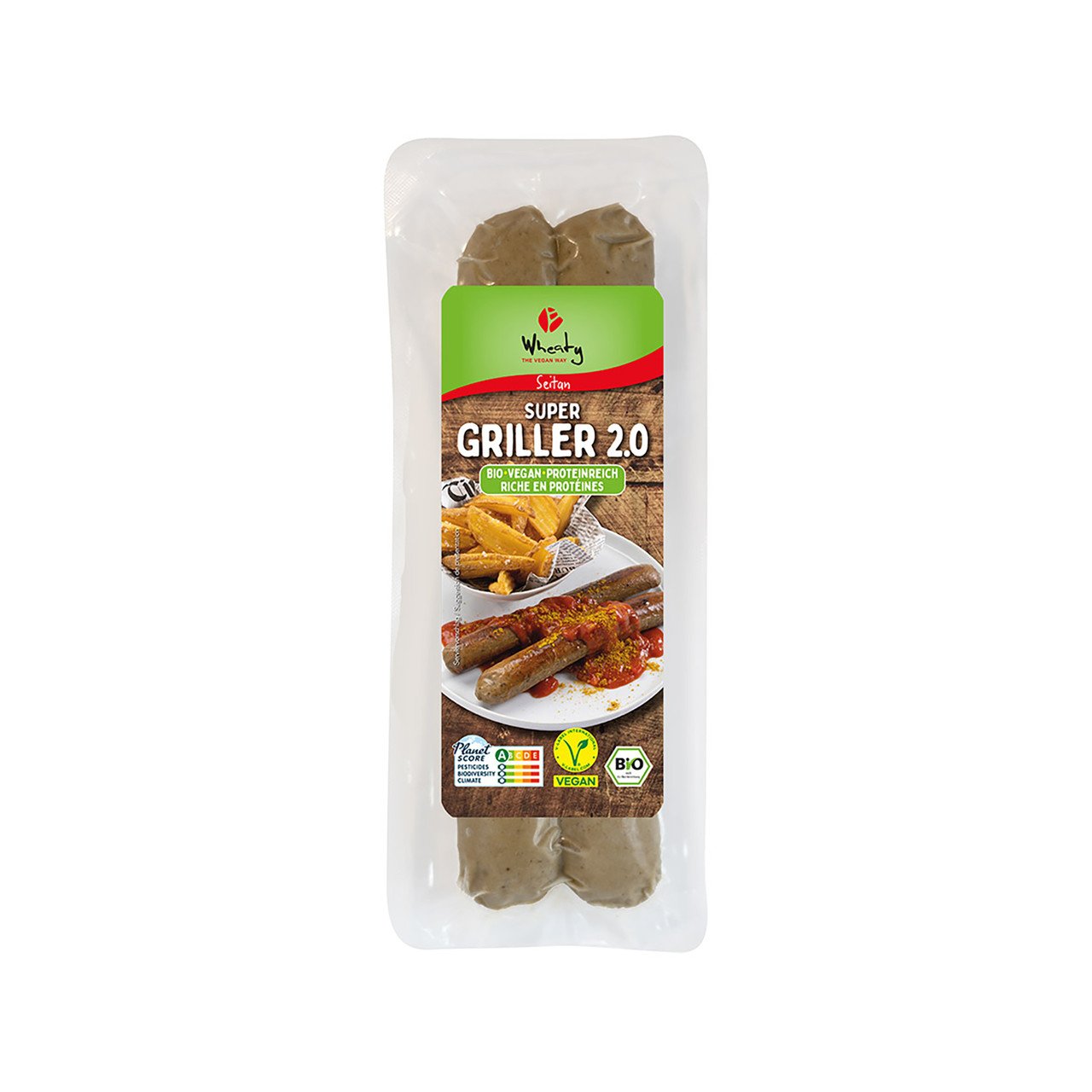 Saftig, deftig und schmackhaft! Der Super Grilleer von Wheaty sieht toll aus und schmeckt auch toll. Mit dieser Bratwurst wird der Grillspass zu Hause oder unterwegs im Wald ein köstliches Vergnügen. Zartes Brät aus Weizeneiweiss wurde hier perfekt gewürzt mit feinen Kräutern.