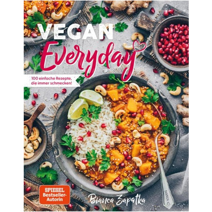 Bianca Zapatka ist Food-Bloggerin, Kochbuch-Bestsellerautorin und meisterhafte Foodstylistin. In ihrem neuen Kochbuch Vegan Everyday zeigt sie, wie super leckere Rezepte für jeden Tag ganz einfach zubereitet werden können. Dank zahlreicher nützlicher Tipps, einfacher Step-by-Step-Anleitungen und überschaubaren Zutatenlisten gelingen Biancas Gerichte immer: von Frühstück über Suppen bis hin zu Fingerfood und Hauptgerichten. Wer auf optische Appetitanregung Wert legt, kommt hier voll auf seine Kosten. Denn Bianca kann nicht nur den Kochlöffel, sondern auch die Kamera schwingen. Als Foodfotografin hat sie ihre Gerichte immer genau im richtigen Blick. Mal gibt es Gourmet-Wimmelbilder, mal ein echtes Foodporn-Erlebnis – rundum yummy eben.