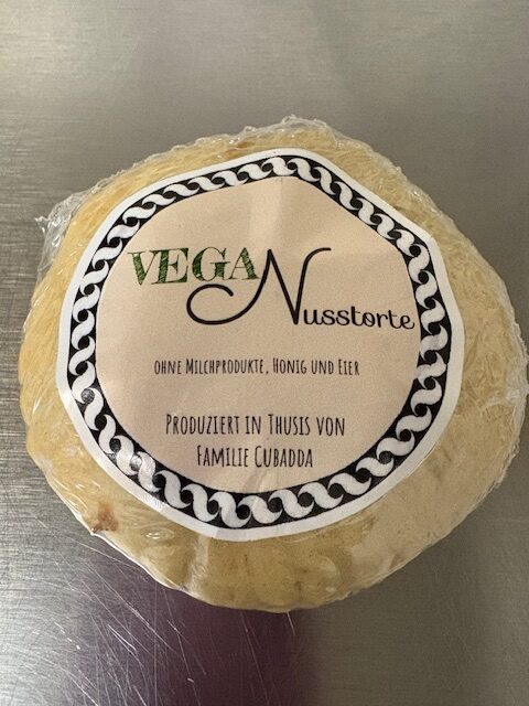 Die feinen veganen Nusstorten werden von Hand in Thusis im Bündnerland aus ausgewählten Zutaten hergestellt.